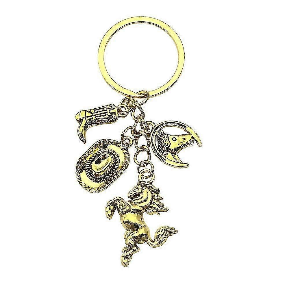 4pcs Cowboy Keychain Rustic Western Boot Hat Charm Vintage Metal Horse Keyring Country Style Accesso