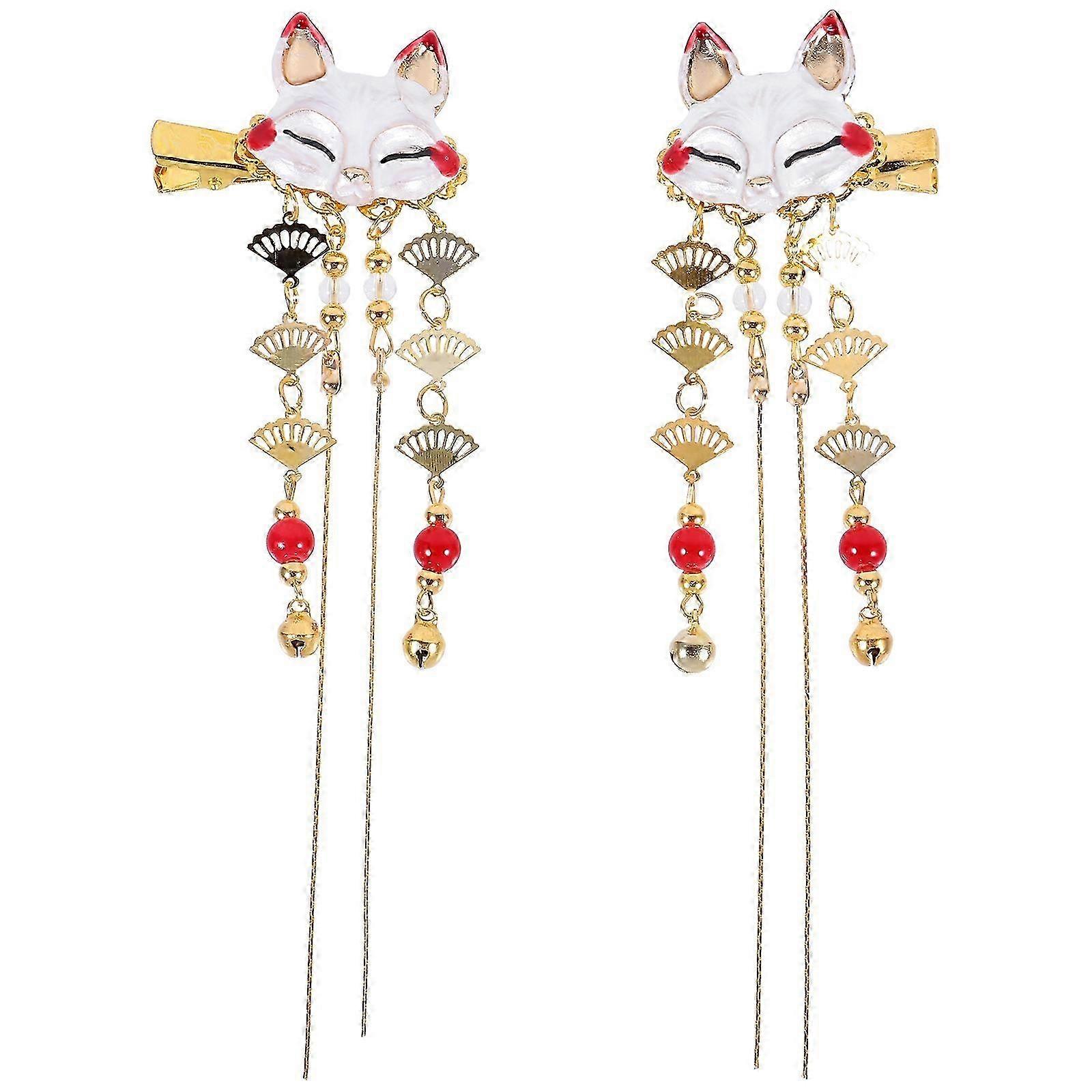 Features: This product is a Chinese style retro tassel hairpin, made of alloy material, safe and durable, with good texture. The unique cartoon mask design and sparkling tassel embellishment make it look more delicate and vivid, and can play a good decorative effect. This is a very creative and beautiful hair clip, a great gift for female friends. Features -Color:Assorted Color-Material:Alloy-Size: 16.00X4.00X1.00cm;/6.29X1.57X0.39in;-It is made of alloy material, has good gloss and can play a great decorative effect.-The appearance of the cartoon mask makes it look more agile, which is very suitable for little girls to decorate their hair.-The hair clip is exquisite in workmanship, and the tassels are exquisite and shining, which can add a lively atmosphere to you.-Unique colors match festive and noble, suitable for your different styles of clothing accessories.-This is an exquisite and agile Chinese style hair clip, which will be an excellent gift for your female friends.Packing list: 2 x hairpins