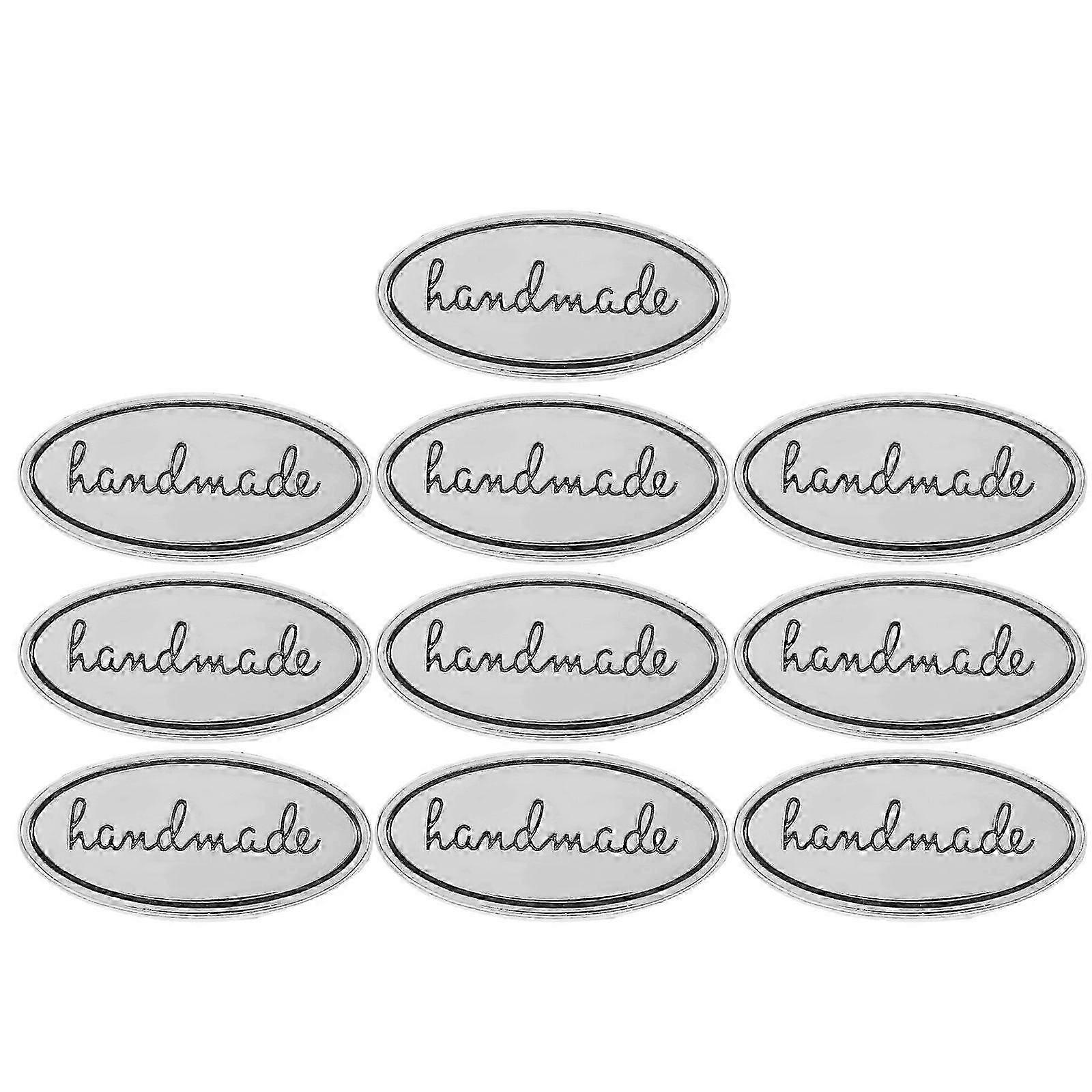 10pcs Oval Handmade Zinc Alloy Tags with Washers Perfect for Diy Crafts Bags Clothes Jeans Shoes Dec