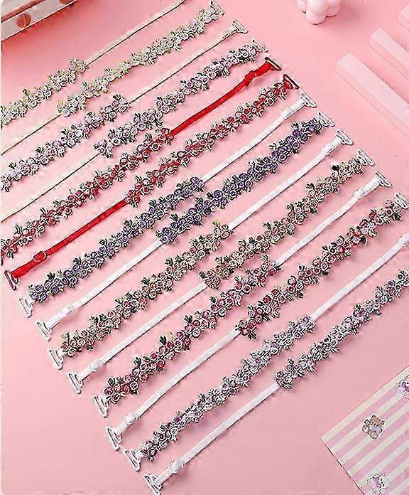 Features: These colorful floral lace bra straps are designed to add a touch of elegance and charm to your lingerie collection. The embroidered flower patterns on the straps make them a replacement for your existing bra straps, offering a stylish and look. They are ideal for pairing with bras, camisoles, and other tops, enhancing your overall appearance. Features -Color:Multi -Material:Lace -Size:37.00X2.30X0.30cm/14.54X0.90X0.12in - embroidery: embroidery craftsmanship enhances the beauty of your lingerie, making everyday wear more confident and charming -Comfortable material: designed with comfortable materials to reduce skin friction, suitable for longterm wear, enhancing your wearing experience - floral patterns: multiple floral pattern options to meet different occasion matching needs, easily adapting to various lingerie styles -Replaceable straps: replaceable shoulder strap design flexibly adapts to various bra styles, increasing the practicality and fashion sense of your lingerie -Antislip design: strap design effectively prevents shoulder straps from slipping, providing stable support, suitable for sports or daily wear Package list: 3 x pairs of flower lace shoulder straps