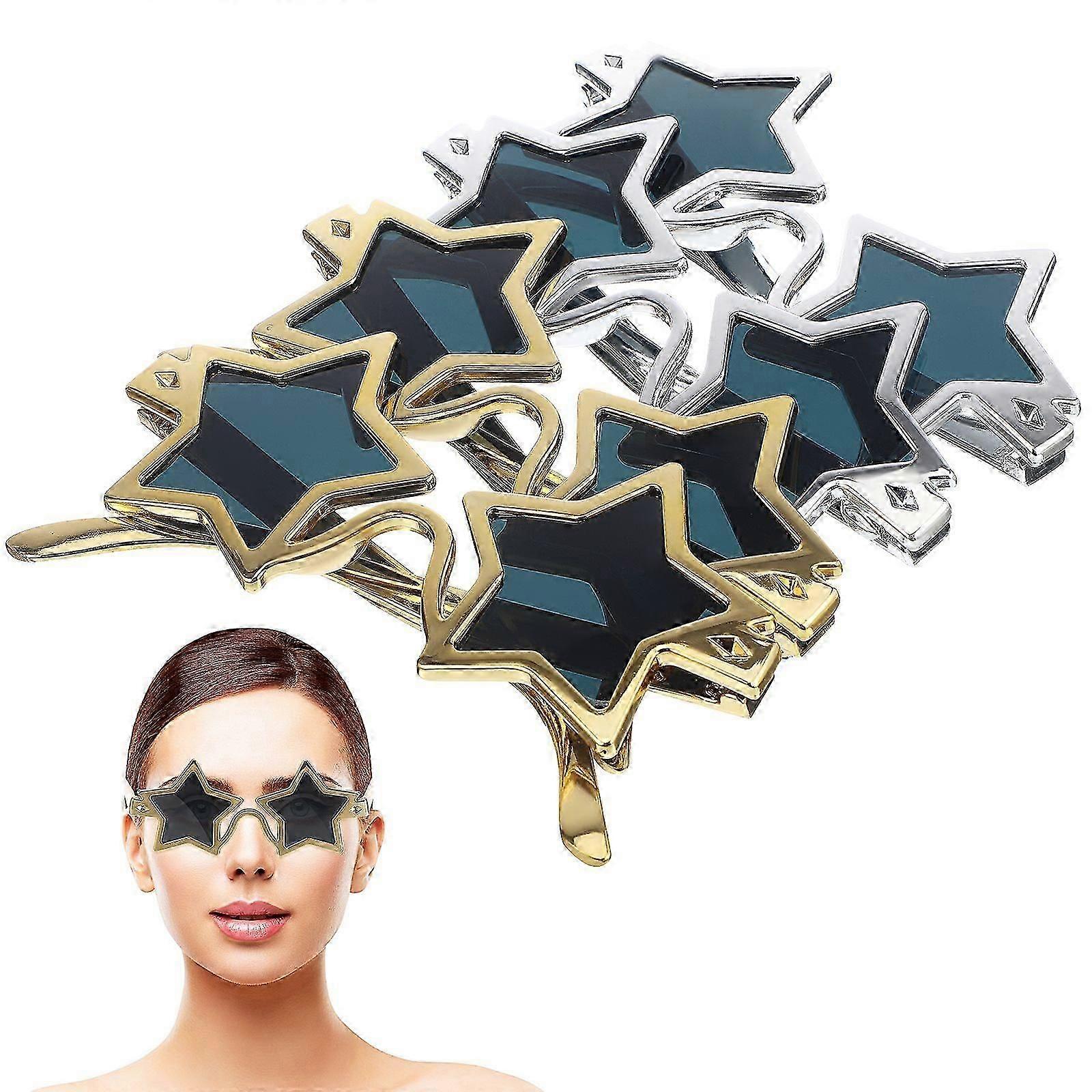 Features: Introducing our funny star glasses These funny sunglasses are designed with a star shape, making them ideal for adding a touch of fun to any party or event. The comfortable design allows that they won't press against your ears or nose, making them suitable for both adults and children. Features -Color:As Shown -Material:PVC - Size: 14.00X13.80X6.00cm/5.50X5.42X2.36in - Unique appearance: The star-shaped design of these party glasses is unique and fun, making them a great addition to any party or event. - Comfortable to wear: The star sunglasses are designed to be lightweight and won't put pressure on your ears or nose. - Suitable size: The star glasses are designed to fit most adults and children, making them a versatile accessory for most people. - Multiple uses: The funny sunglasses are functional and versatile, can be used as party glasses, decorative glasses, photo props, and more. - Sturdy and strong: Made of PVC materials the party glasses are strong and lasting, ensuring they can be used for a long time. Package list: 4 x star glasses