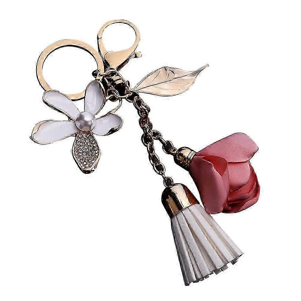 Pink Elegant Crystal Five leaf Flower Car Keychain with Cloth Flower Tassel Leaves as Female Bags Pe