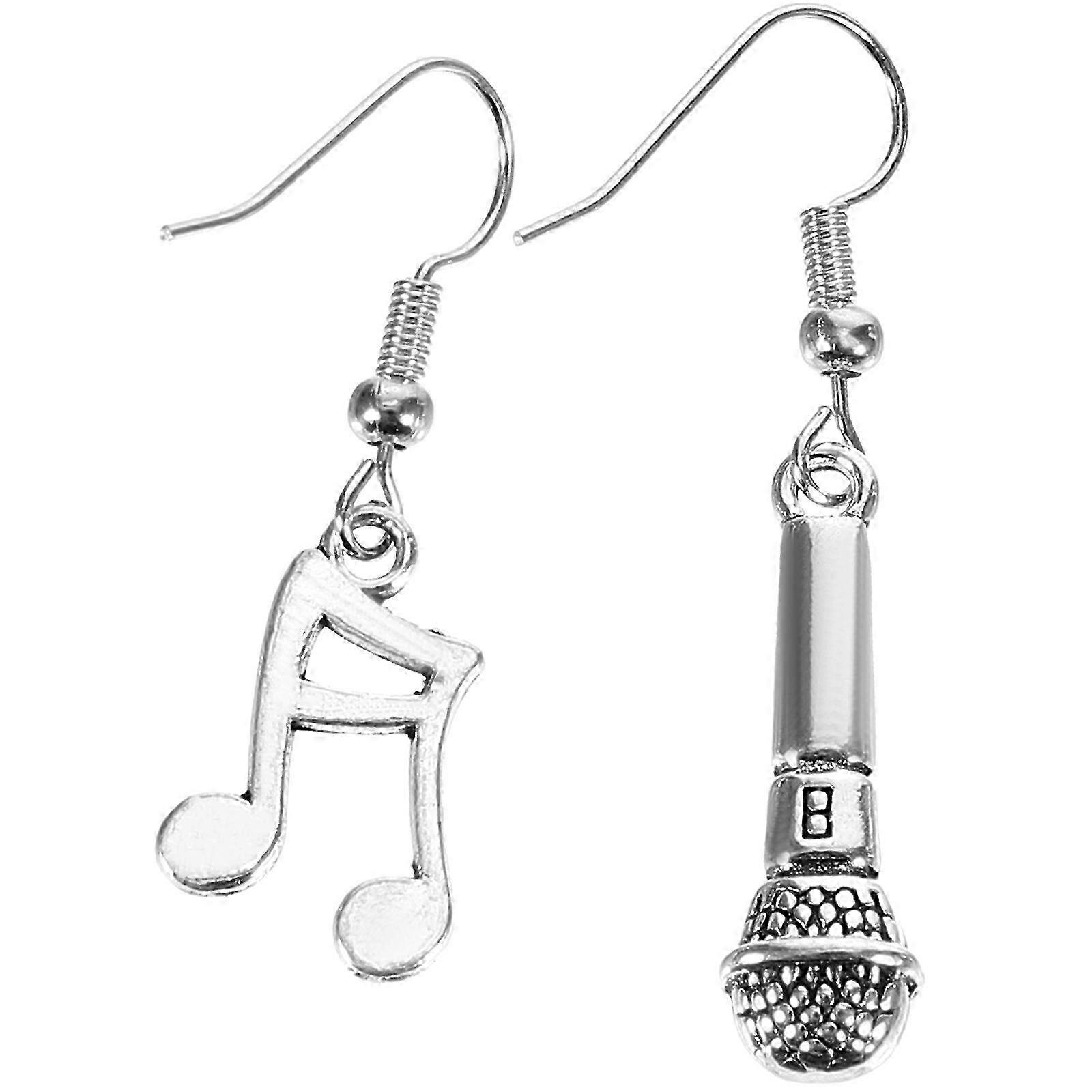 1 Pair Unique Asymmetrical Music Note and Microphone Dangle Earrings for Fashionable Women