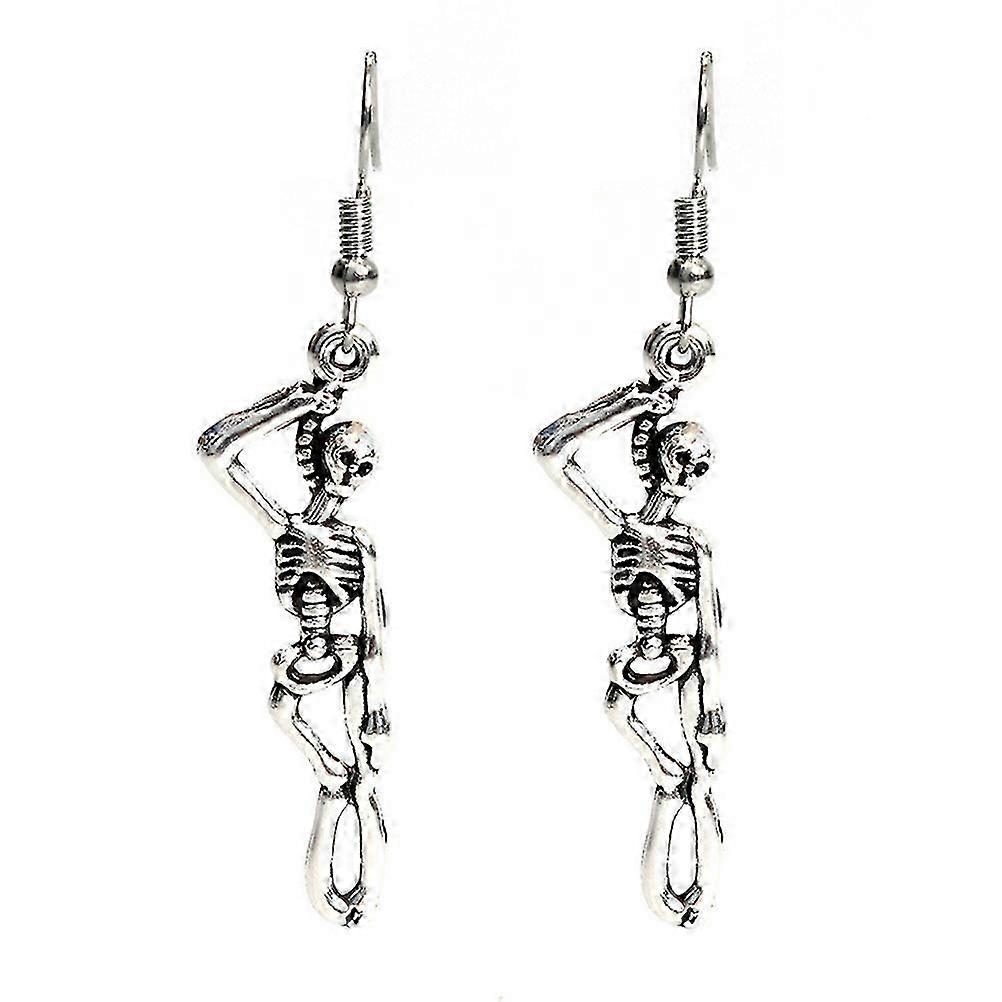 1 Pair Silver Funny Skull Skeleton Earrings for Women's Halloween Alloy Jewelry