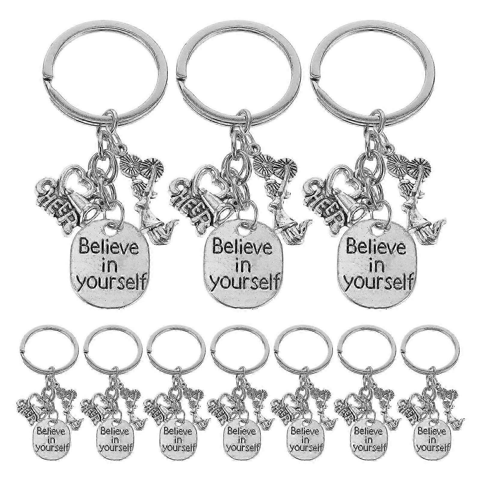 10 Pcs Adorable Cheer Keychains Ideal Inspirational Gifts for Girls Charming Metal Bag Charms Cute P