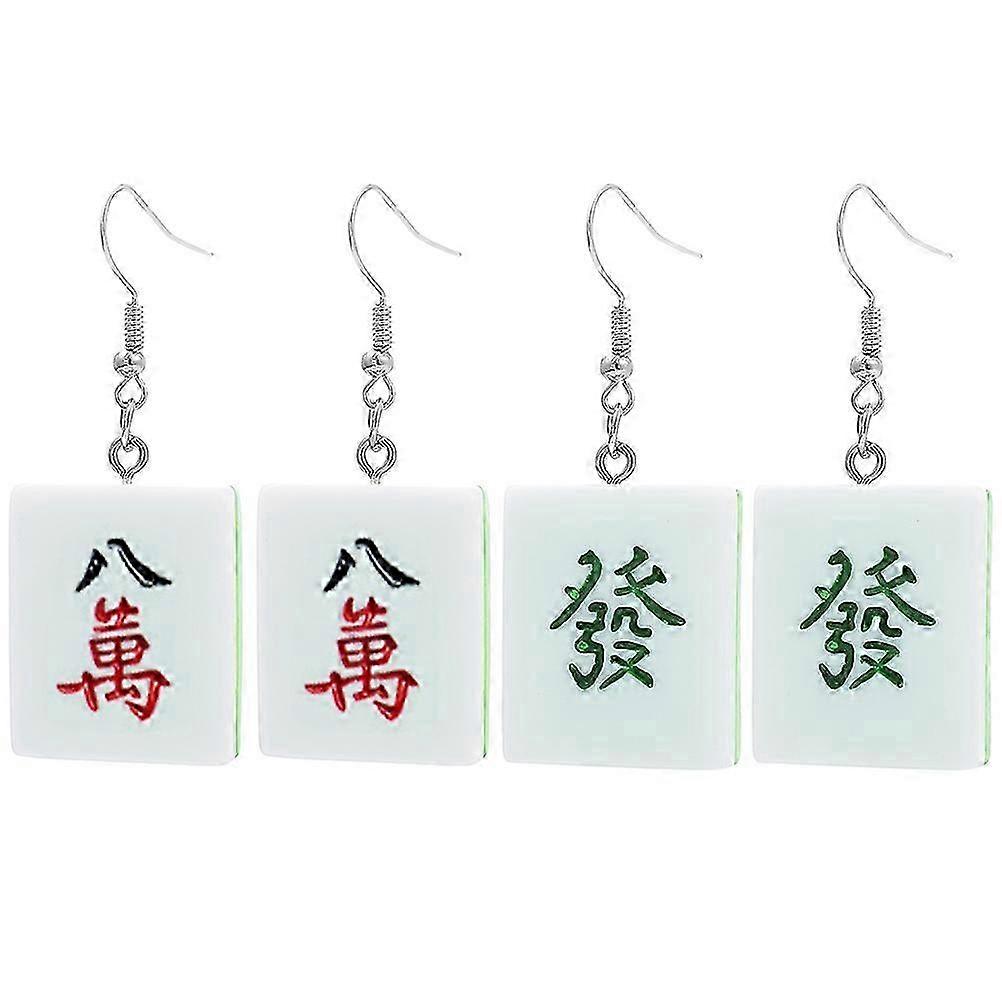 Funny 2 Pairs of Women's Mahjong Drop Charm Ear Jewelry Earrings