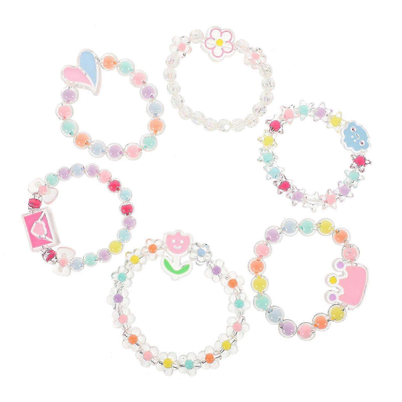 6Pcs Colorful Plastic Beaded Bracelets for Kids and Toddlers Elastic Jewelry