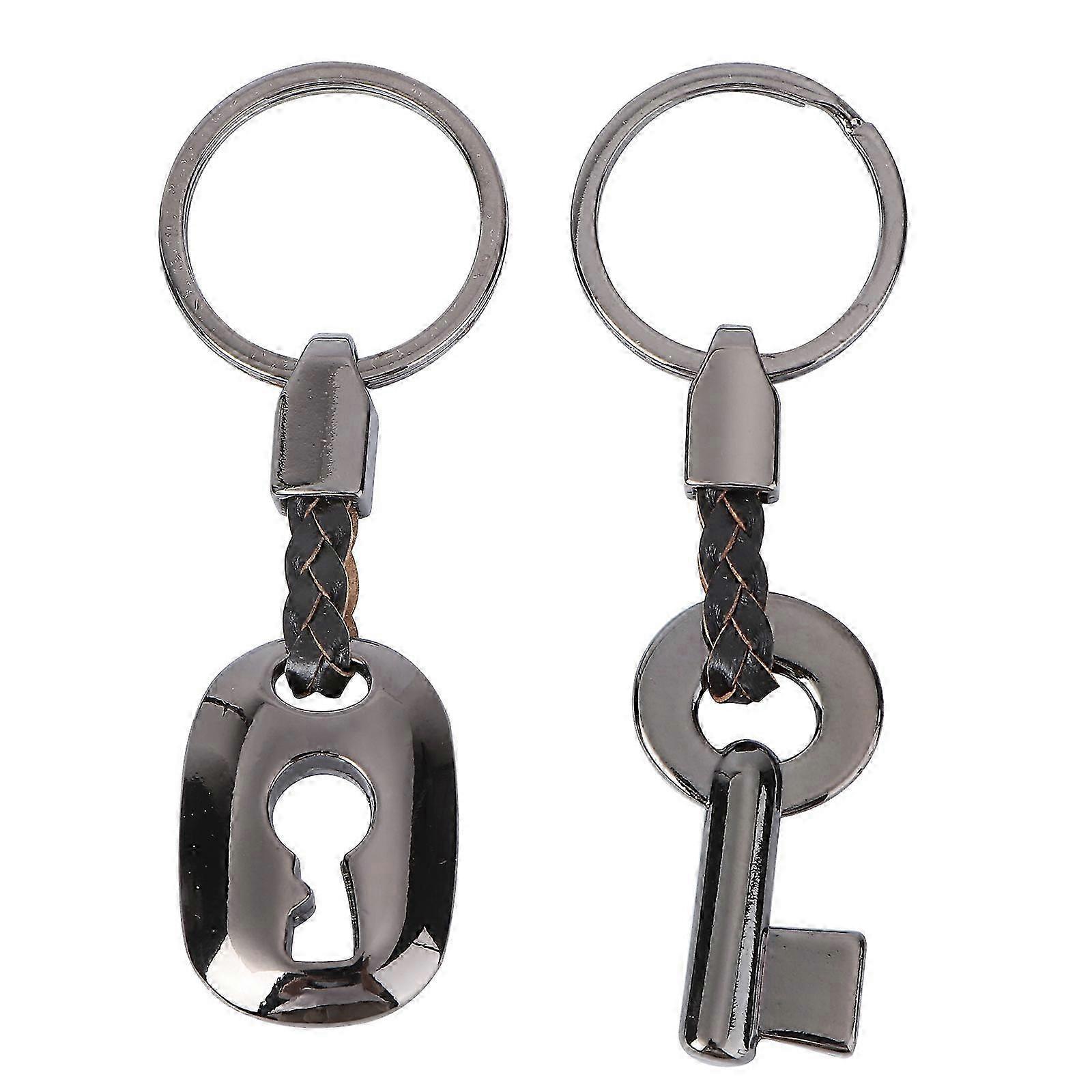 2 Pcs Unique Creative Fashion Leather Couple Keychain Key Ring Key Lock Gift