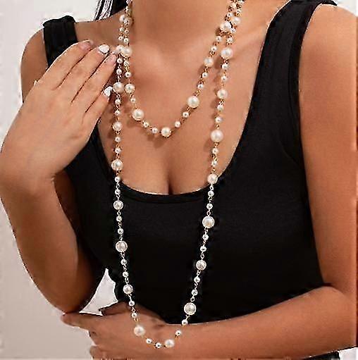 Gorgeous Long Faux Pearl Beaded Chain Jewelry Stackable and Trendy Women's Choker Necklace