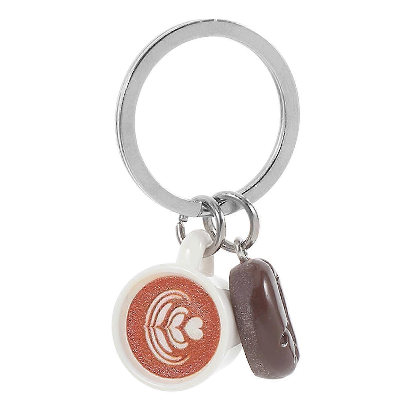 Cute Coffee Cup and Coffee Bean Keyring Charming Bag Hanging Decor for Backpacks