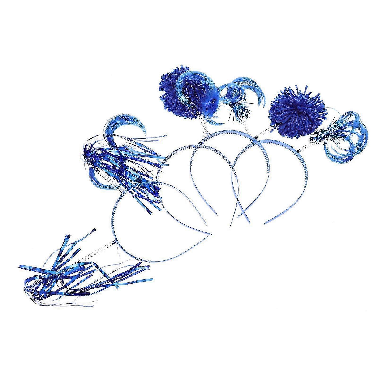 8pcs Charming Blue Tinsel Wrapped Pom Pom Headbands Party Tassel Headwear Accessories for Women Birt