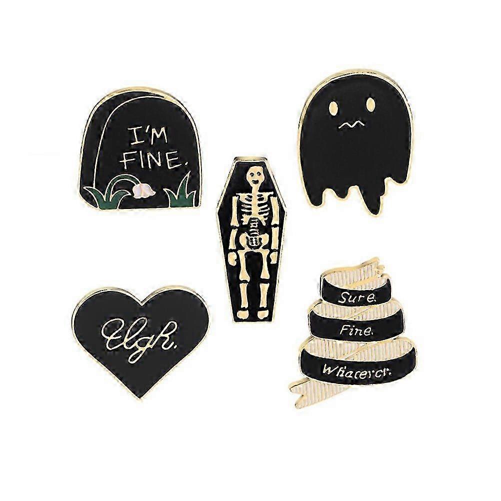 5PCS Hilarious Halloween Punk Tombstone Coffin Skull Ghost Alloy Brooch Set for Halloween Dance Part