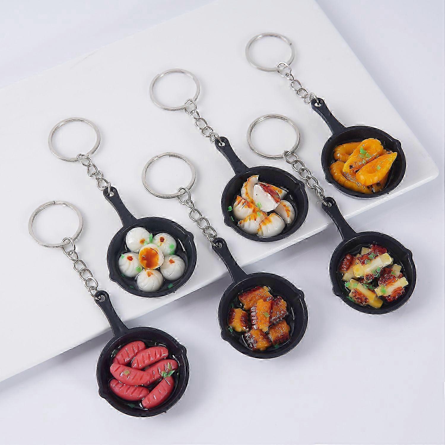 6pcs Charming Food Pendant Keychain with Frying Pan Rib Fried Dumpling Sausage For Handbags and Part