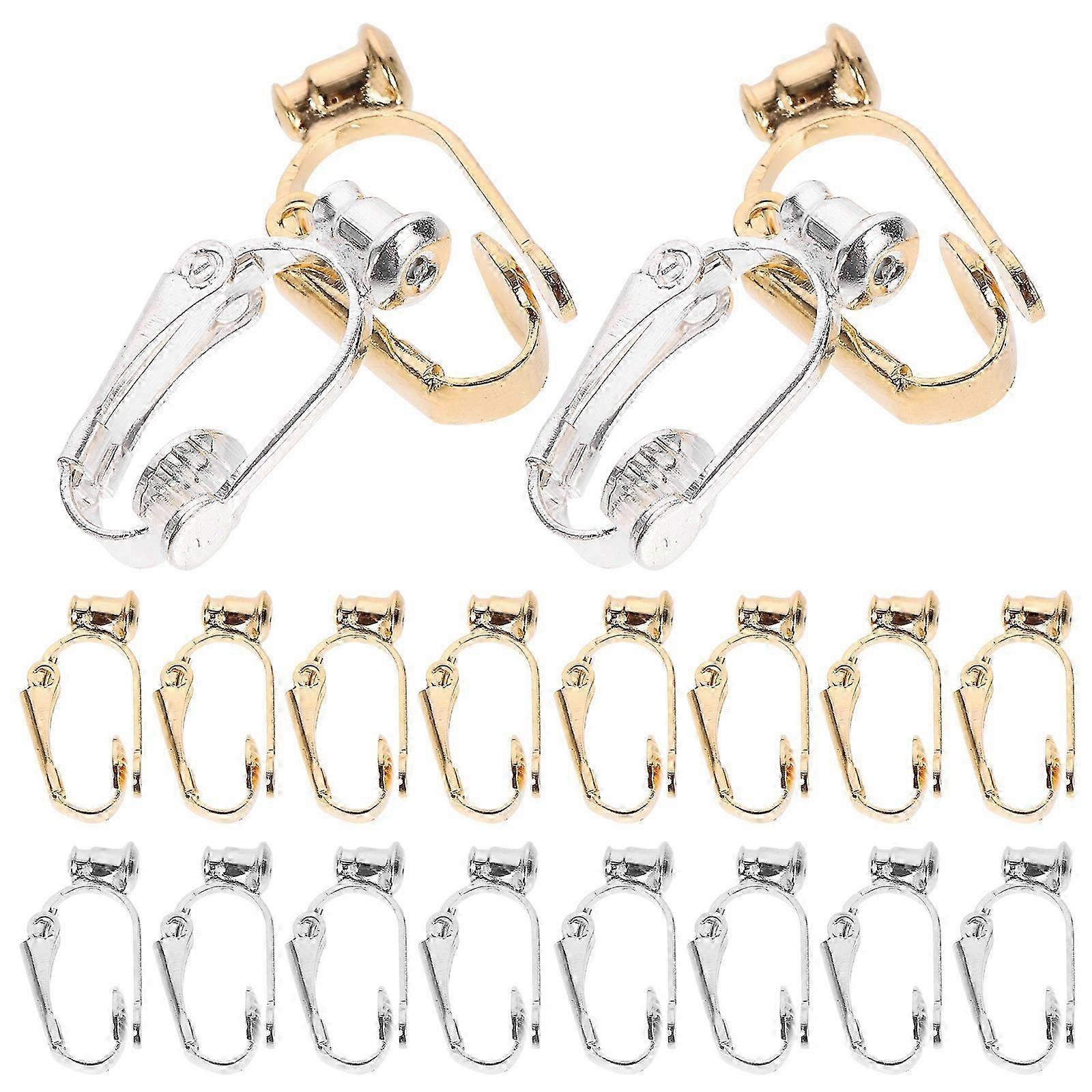 20PCS Golden and Silver DIY Ear Clips Earrings Accessories Ear No Cutting Earring Clips Converters D