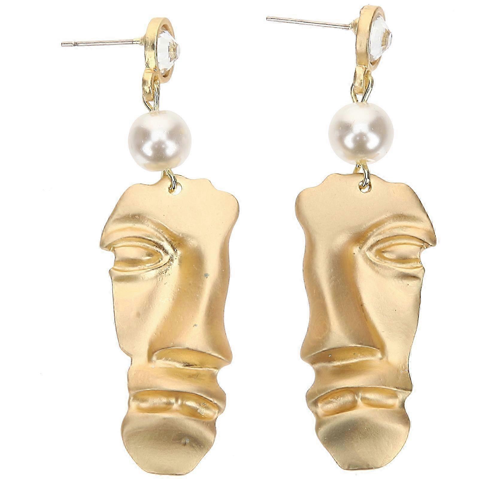 1 Pair of Glamorous Golden Female Face Dangle Earrings Fun and Stylish Ear Jewelry for Women and Gir