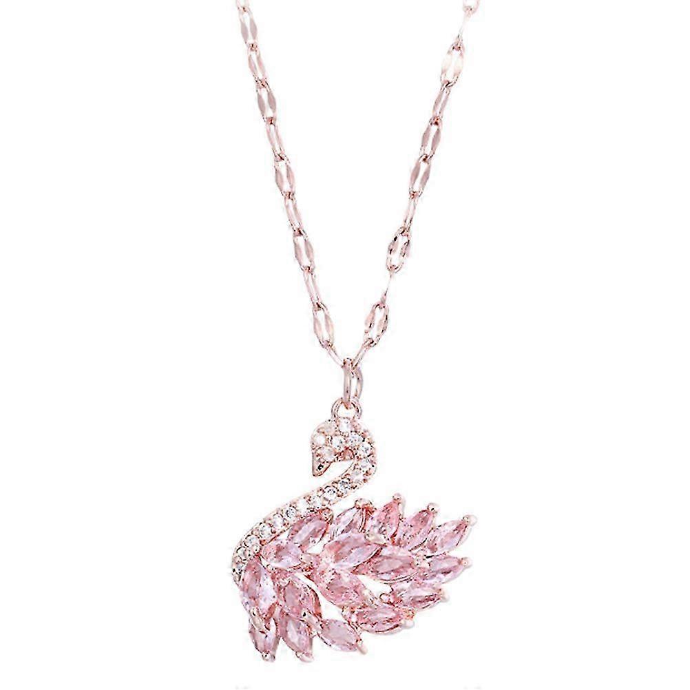 Elegant Pink Zircon Necklace Fashion Choker with Swan Shaped Neck Chain as Neck Jewelry