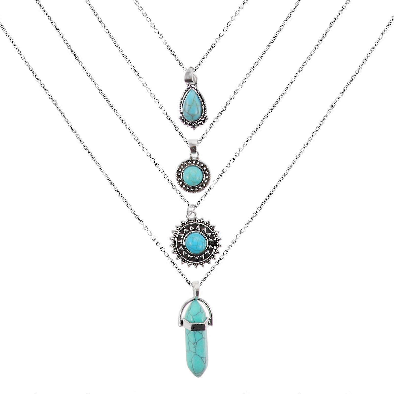 1 Set of Stunning Turquoise Pendant Layered Necklaces for Women and Girls Multi layered Beauties