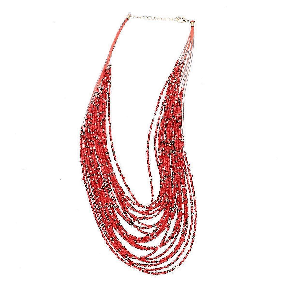 Red Retro and Fashion Exaggerated Beads Multi layer Neck Chain A Creative Necklace Pendant