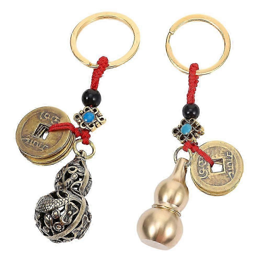 2pcs Creative Metal Gourd Keychain Car Key Chain Pendant Fashionable Key Ring Accessory