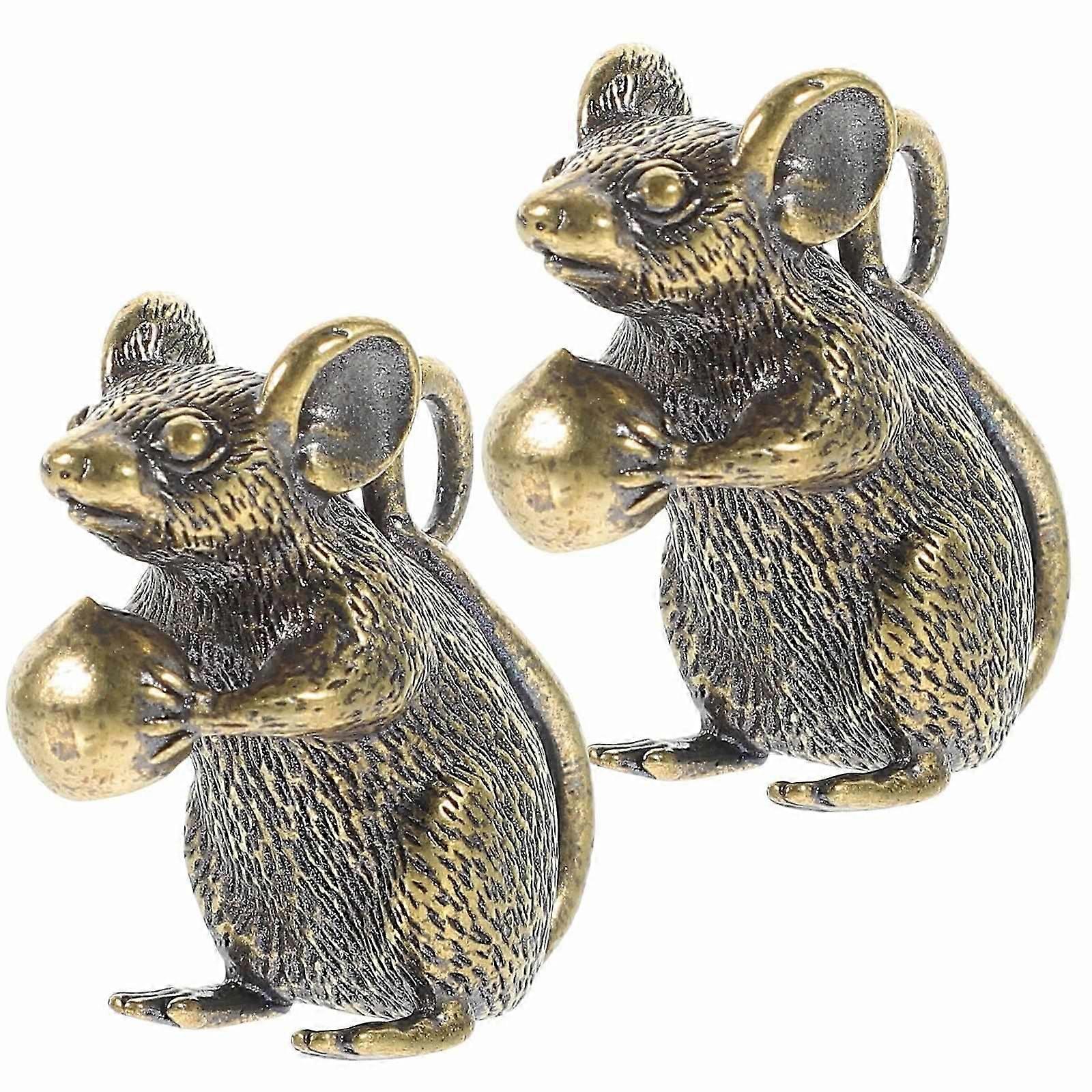 2Pcs Fun Brass Mouse Charms Copper Rat Pendants Keychain Pendants Office Desk Decor