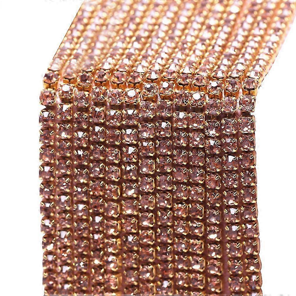 10m Sparkling Crystal Rhinestone Close Chain Trim For Jewelry Crafts DIY 2mm Champagne Color