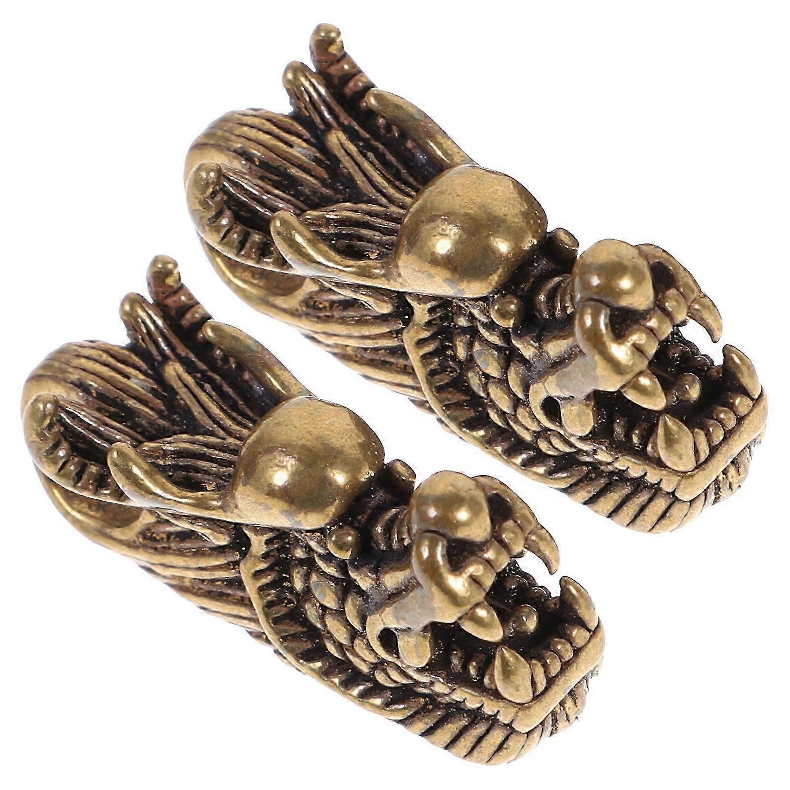 2PCS Intricate Brass Long Horn Dragon Head DIY Pendant A Creative Keychain Piece