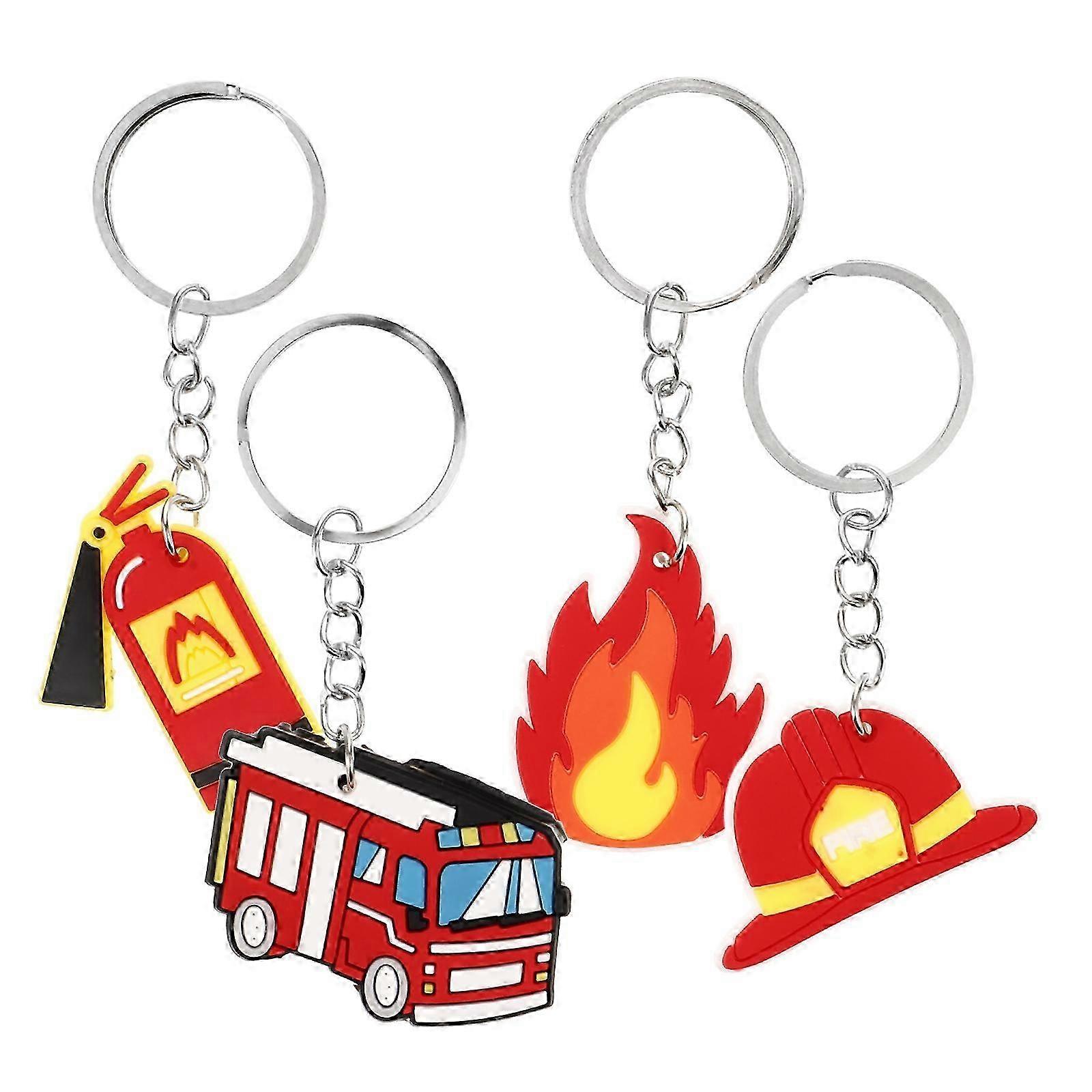 4pcs Decorative Metal Firefighter Keychain Charm Pendant for Firefighter Fans