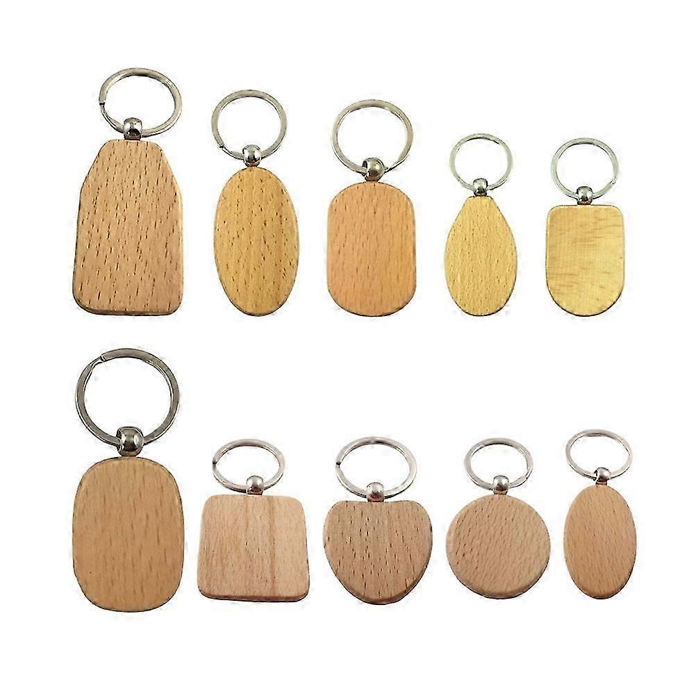 10 Pcs Mixed Style Unfinished Wooden Keychain Hanging Key Ring Pendant for DIY Lettering Painting Cr