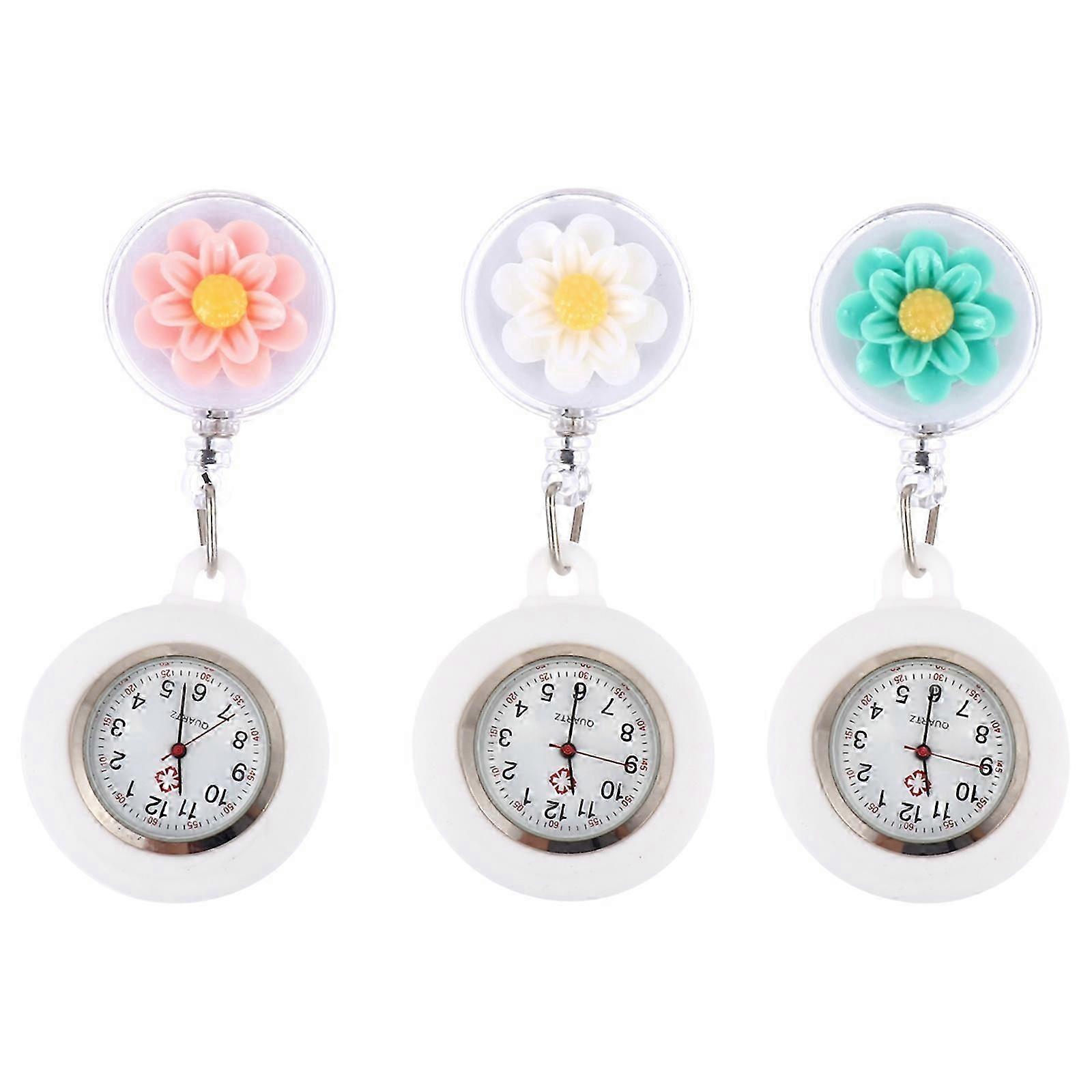 3pcs Charming Retractable Cartoon Flower Hanging Nurse Watches for Women