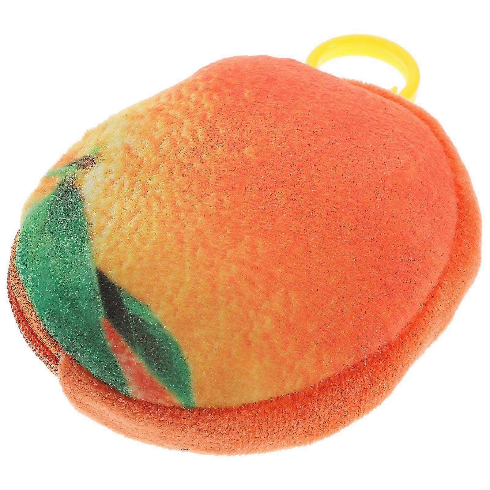 3D Cartoon Novelty Orange Fuzzy Plush Pouch Fruit Zipper Coin Purse Mini Wallet with Keychain for Ad