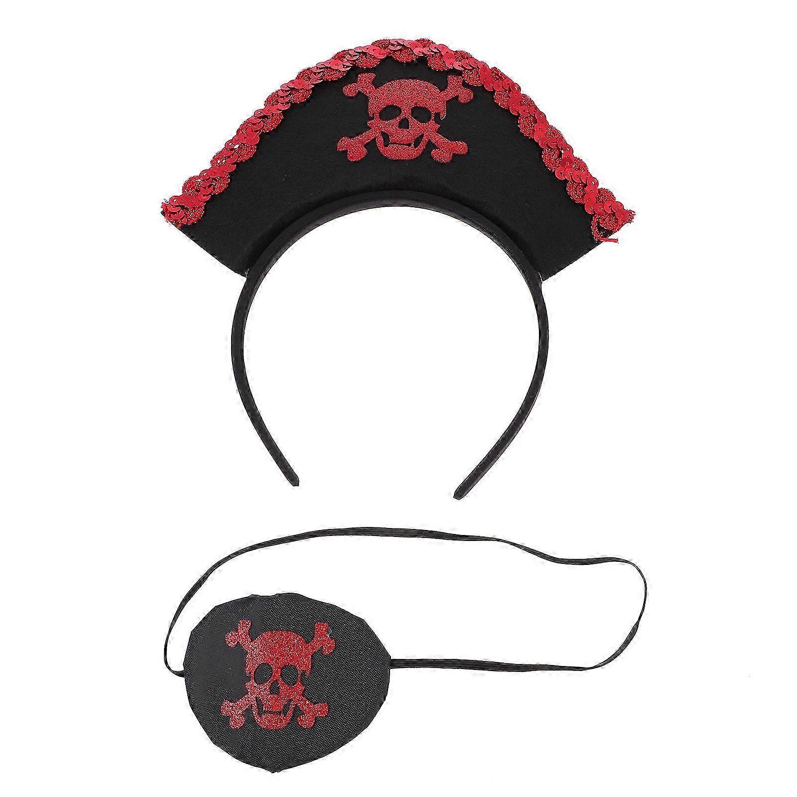 Adults Black Blindfolds with Mini Pirate Cap and Halloween Officer Hat Eye Masks Set
