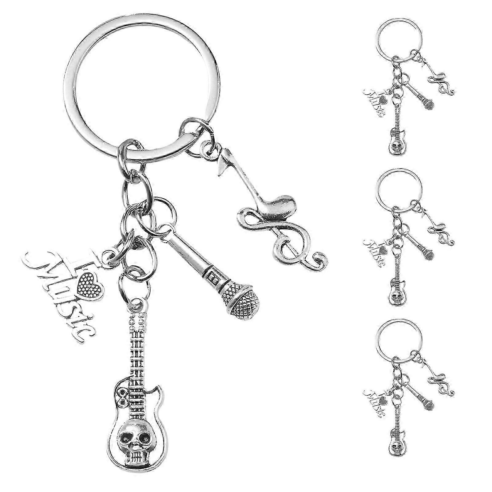 4pcs Adorable Guitar Microphone Music Note Keychain Charming Musical Instrument Bag Charm for Teen P