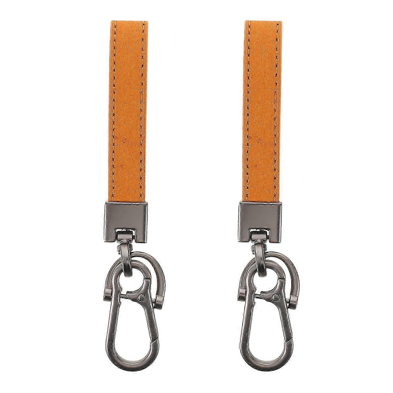 2pcs Faux Leather Key Fob Wristlet Keychain with Anti Lost D Ring Handy Keyring Holder for Women Men