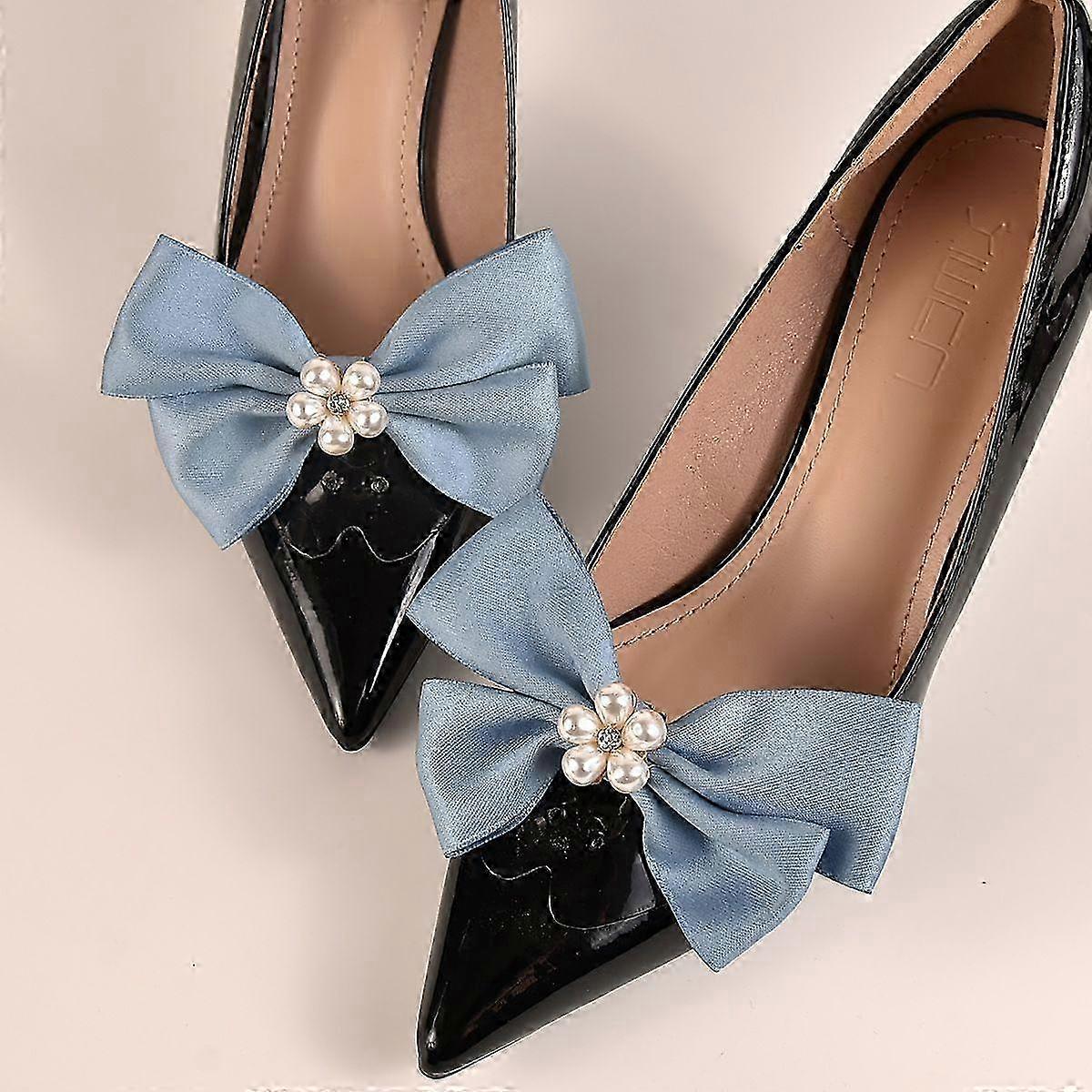 1 Pair Stunning ABS Pearls Bowknot Detachable Charm Buckles Clamps for Elegant Bridal High Heels Wed