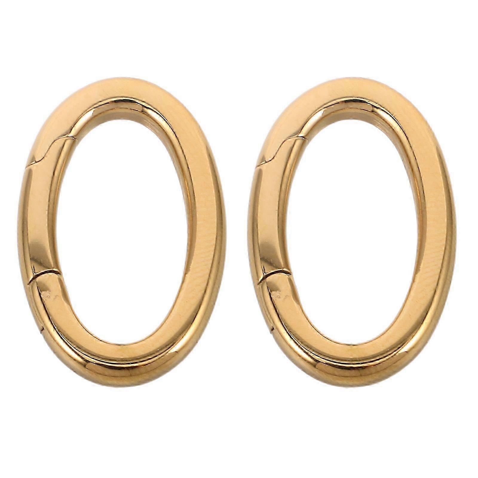 Features: Crafted from polished stainless steel, this oval spring-loaded buckle is designed to provide a secure and stylish connection for your DIY necklaces and bags. Its sleek, egg-shaped design ensures it won't fade over time, making it a reliable choice for your accessories. Ideal for attaching charms, pendants, and other decorative elements, this clasp adds a touch of elegance to any project. Features - Color: Golden -Material:Stainless Steel - Size: 2.32X1.48X0.30cm/0.91X0.58X0.12in -Durable material: made from polished stainless steel, this oval spring buckle is designed to resist fading and maintain its shine, ensuring your jewelry looks new for a long time -Unique design: the oval egg shaped design is both unique and aesthetically pleasing, making it suitable for various diy necklaces or bag decorations -Easy to use: featuring a strong spring mechanism, this clasp opens and closes effortlessly, allowing you to quickly and easily attach different accessories -Wear resistant: built to withstand daily wear and tear, this clasp is scratch resistant and ideal for everyday wear or outdoor activities without easily getting damaged -Universal size: designed to be compatible with various chain sizes, this clasp meets different diy creative needs, making it a versatile addition to your crafting supplies Package list: 2pcs Oval Bracelet Clasp