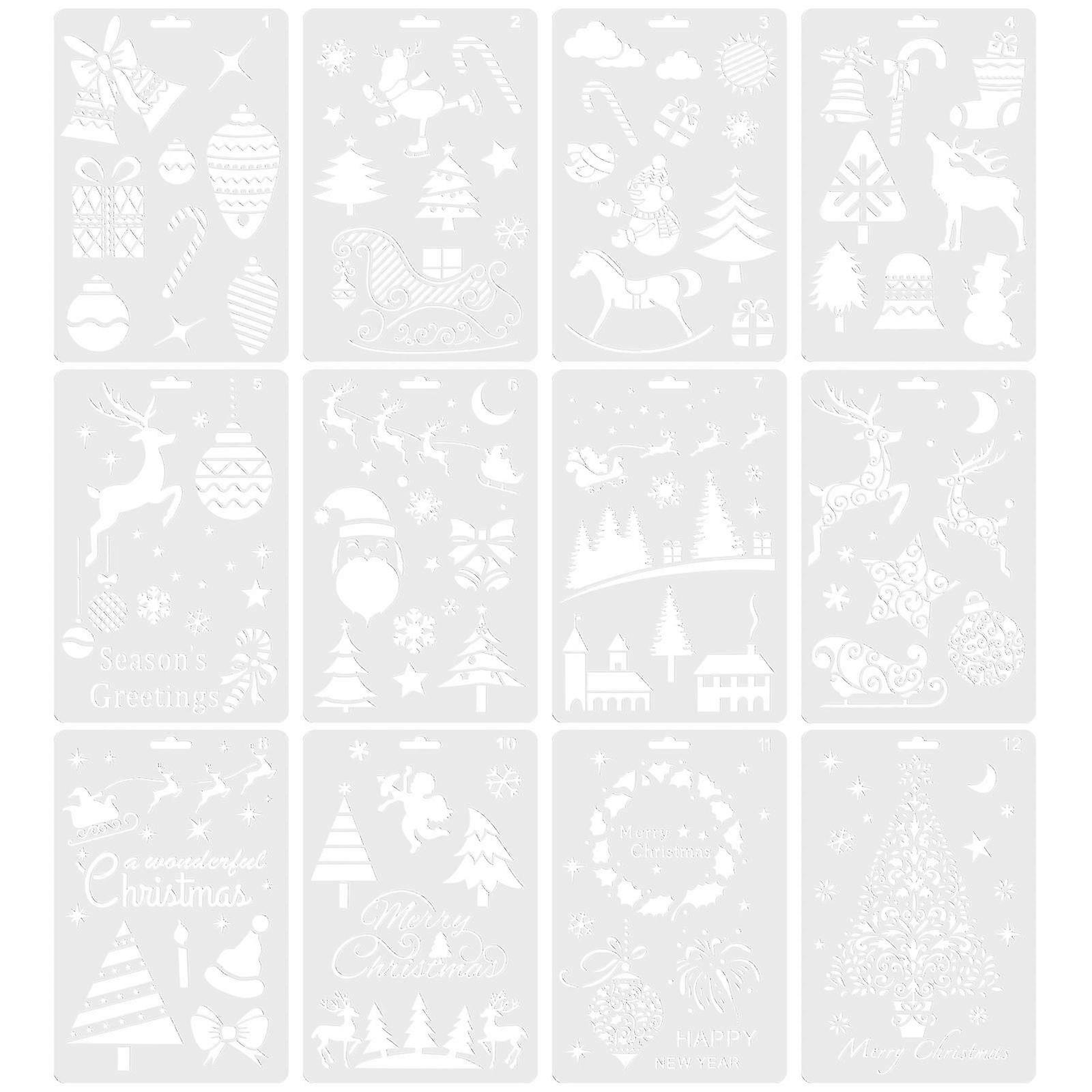 12pcs Christmas Stencils for Wall Painting Scrapbooking Stamp Album Decor Embossing Paper a Versatil
