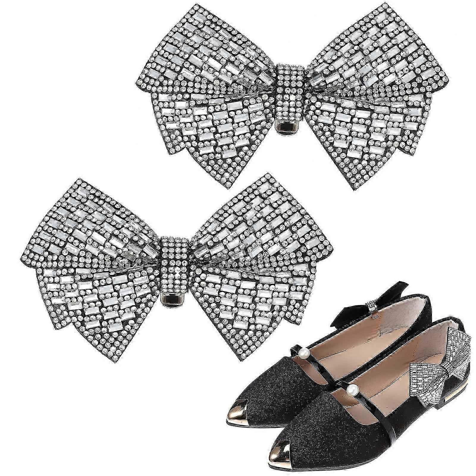 2 Pcs Exquisite Rhinestone Decorative Shoe Clips for Pumps and Heels Bow and Heel Styles