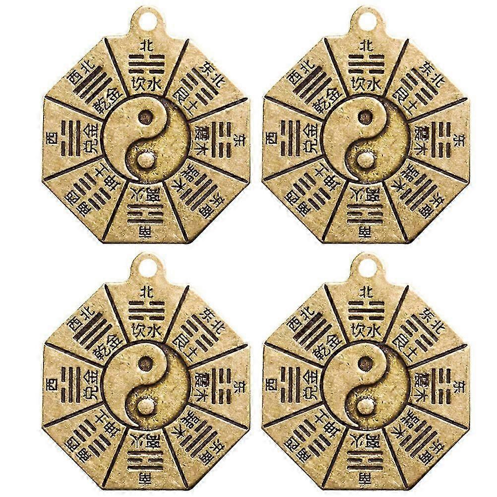 Unique 4pcs Brass Trigram Tai Chi Amulet Yin Yang Pendants for Key Bag