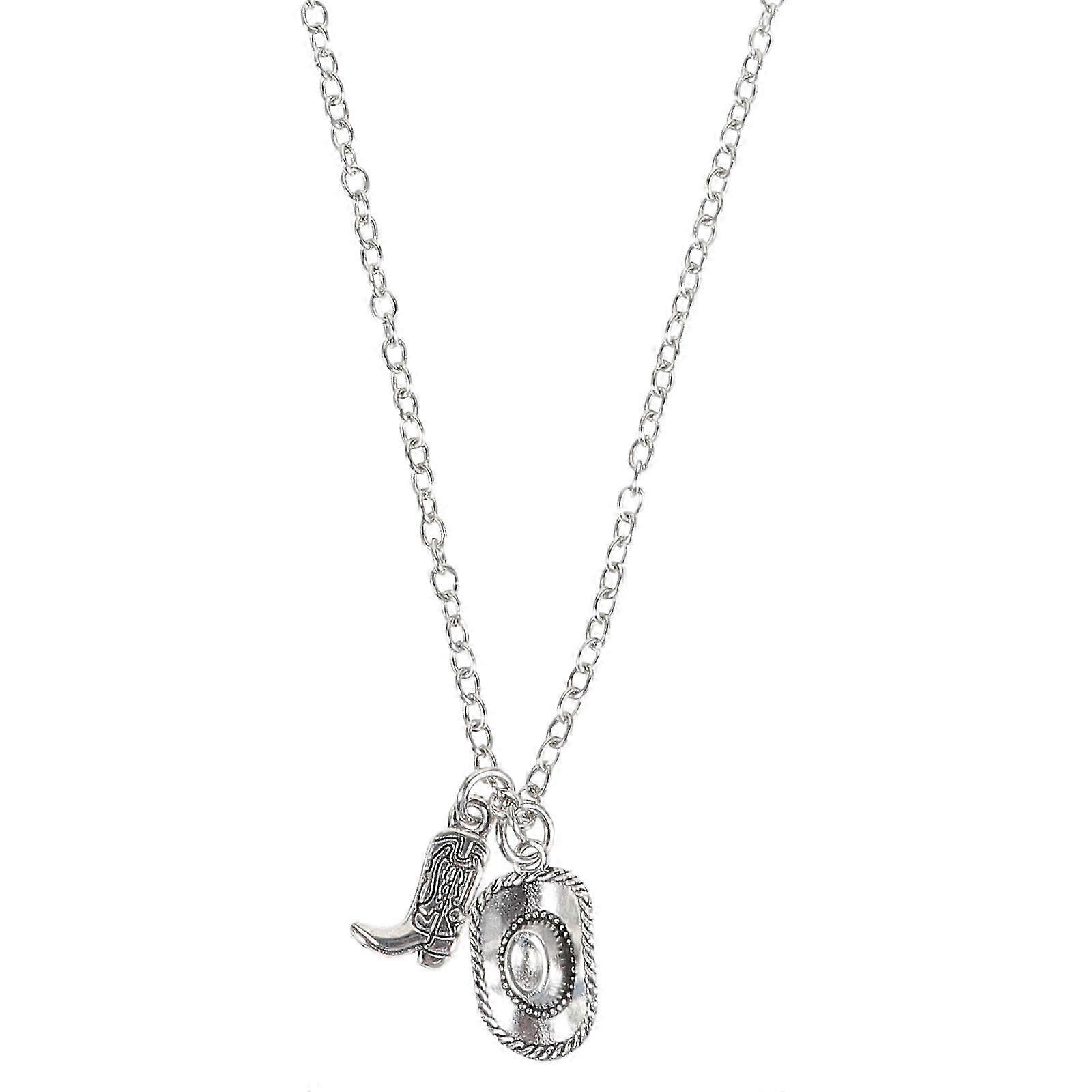 Cool Cowboy Hat and Boot Necklace Pendant Metal Hanging Ornament