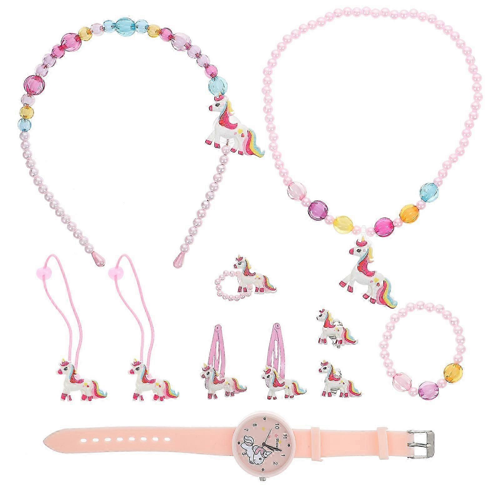 1 Set Charming Cartoon Unicorns Watch Necklace and Hair Accessories Perfect for Girls