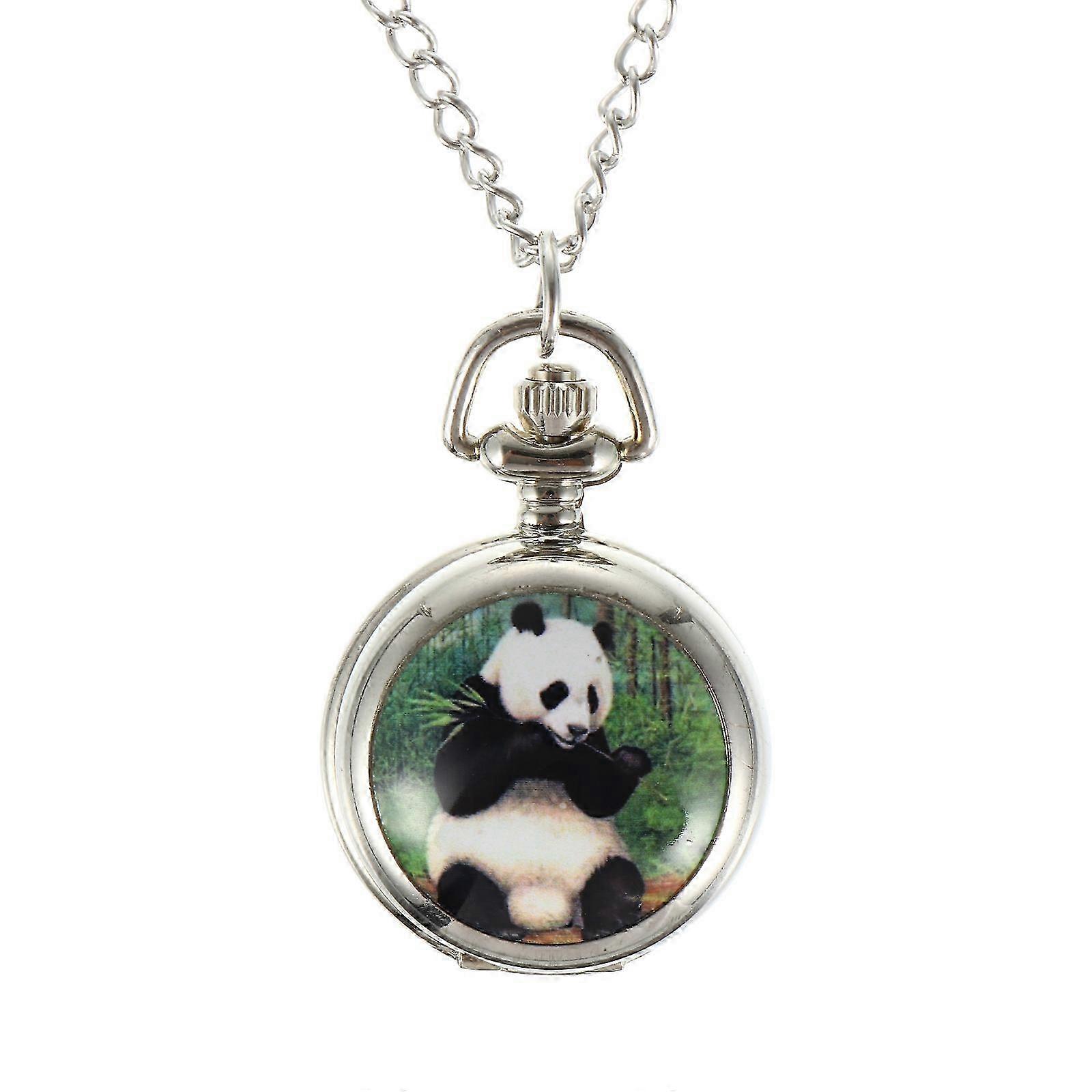 1pc Adorable Panda Pocket Watch Necklace Chain Watch as Children Festival Gift Souvenir