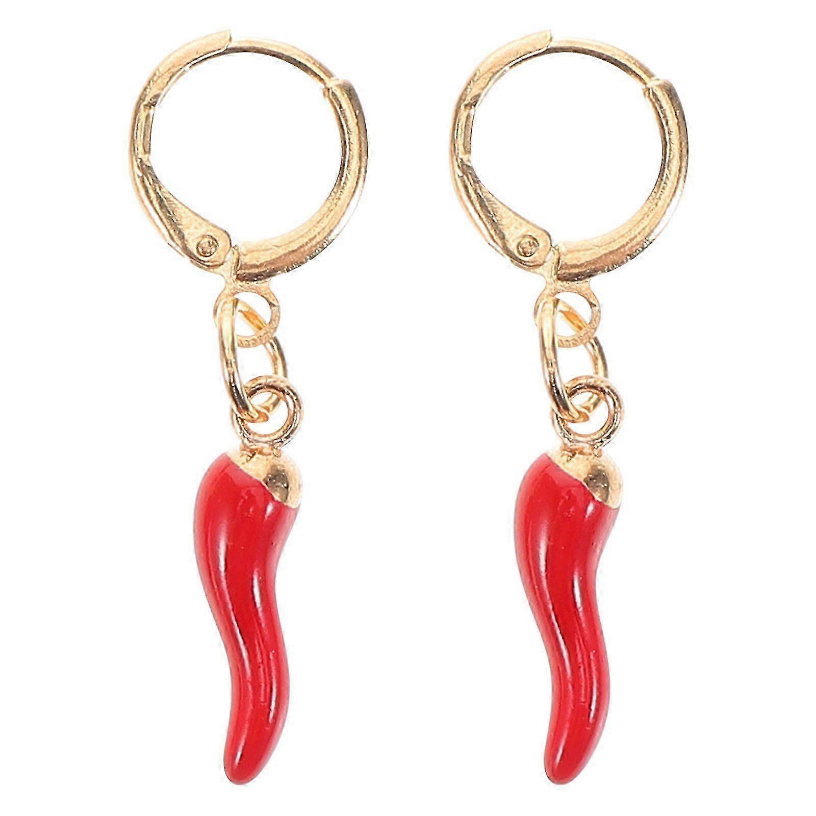 Red Small Chili Pepper Charms Huggie Hoop Earrings Trendy Italian Horn Jewelry Funny Vegetable Earri