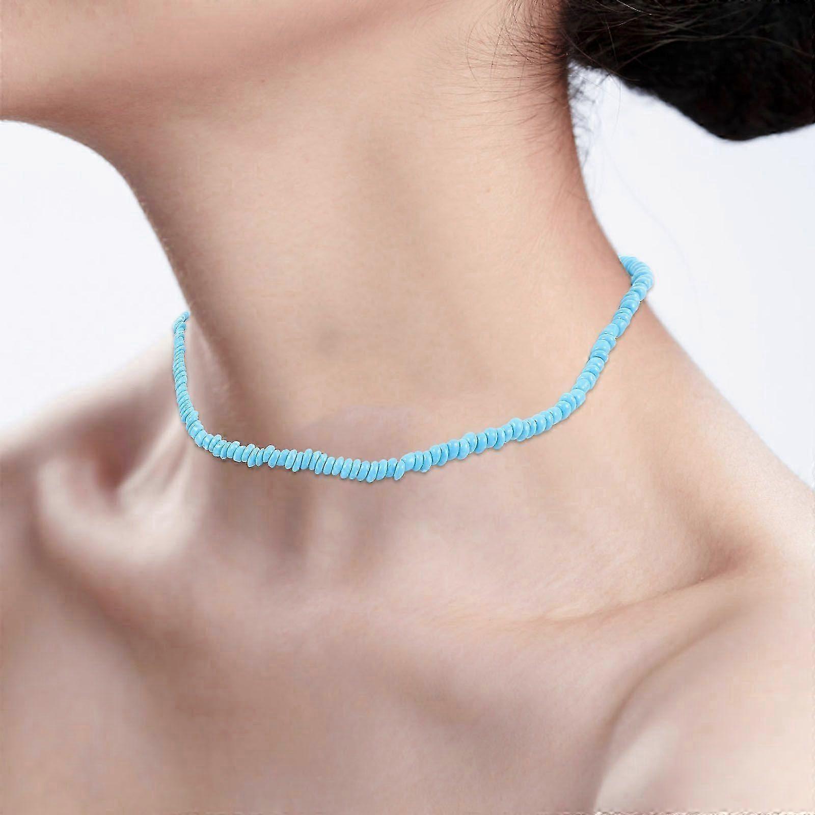 Blue Simple Color Rice Bead Single Layer Individual Character Necklace A Charming Accessory