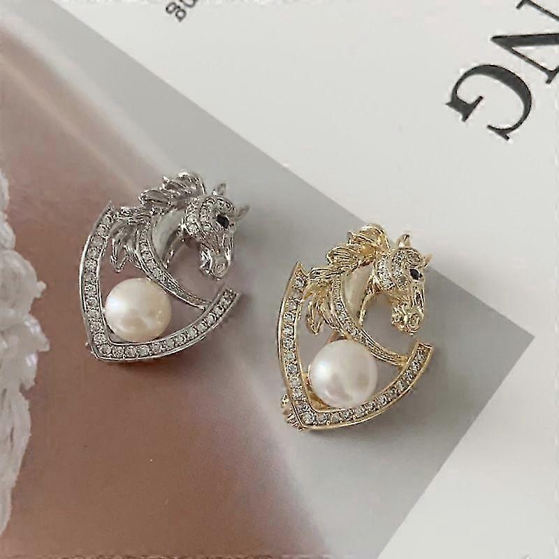 Elegant Baroque Style Horse Lapel Pin with Artificial Pearls Versatile Anti Exposure Brooch for Wome