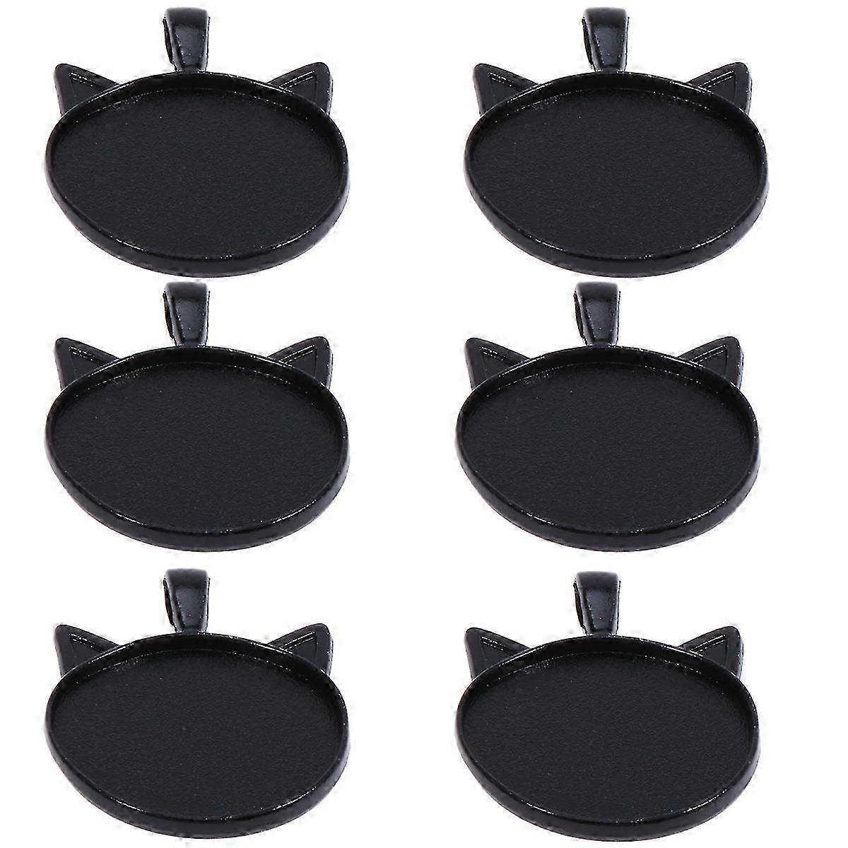 10 Pcs 25mm Black Round Trays with Cat Ears Bezel Copper Plated Pendants for DIY Crafting and Jewelr