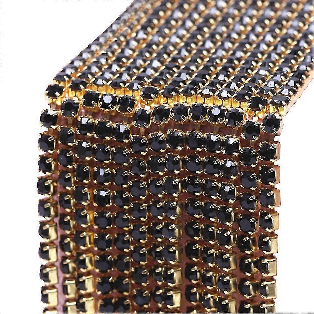 Useful 10m Black Crystal Rhinestone Close Chain Trim for Jewelry Crafts DIY 2mm