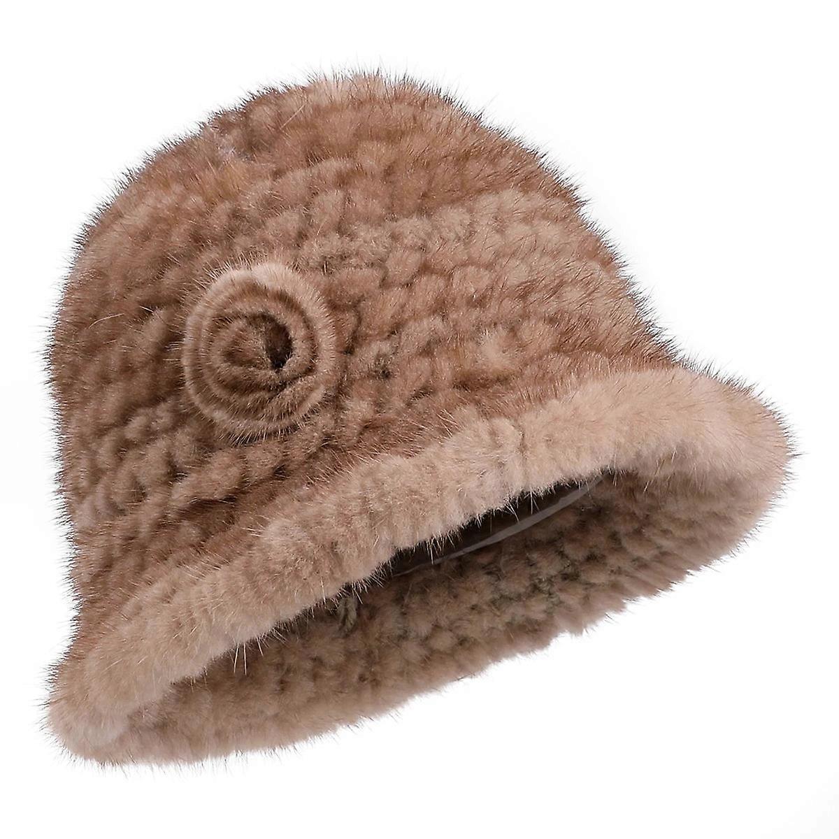 Women's Winter Gneuine Mink Fur Textile Knitted Bucket Hat Real Fur Fluffy Fishman Cap Cold Weather Warm Hats For Lady Luxury