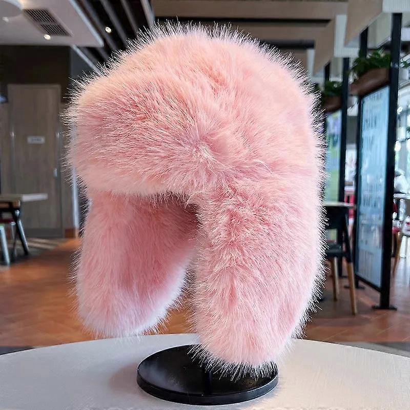 Thicken Winter Faux Fur Mink Plush Lei Feng Hat For Women Outdoor Skiing Cycling Cap Warm Ear Protection Cold Proof Russian Hat