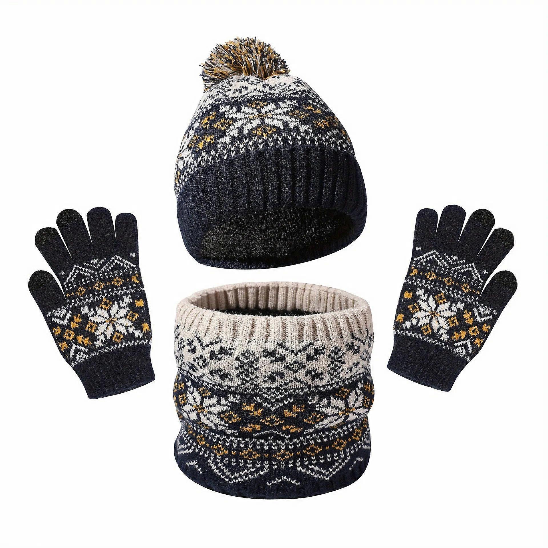 Yanbiguo Kids Winter Hat Gloves Scarf Set, Girls Boys Hats Beanie With Pom Children Knit Neck Warmer Mittens Fleece Lined Set