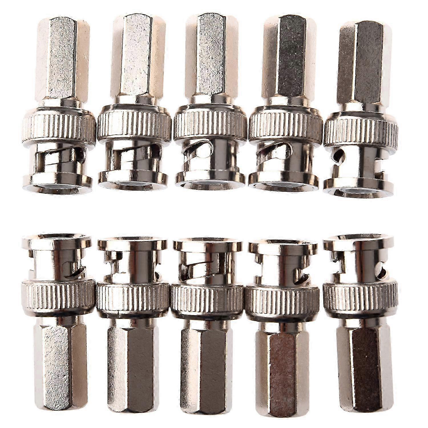 A 10-pack of a twist-on, male, coax BNC connector for CCTV RG59.
